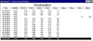 Analyzed data is simultaneously displayed on the analyzer front panels and sent to the host PC for display and storage. Output files of both analyzed and raw data are easily imported into popular spreadsheet and graphing software like Lotus 123, Excel, SigmaPlot, and Origin for subsequent statistical analysis and graphing. There are optional outputs to a strip-chart recorder, oscilloscope and/or thermal printer. Data is viewed on the DMSI Control Screen as windows containing scrolling data tables, data graphs and/or waveform graphs. The windows are opened, closed and configured "on the fly" by point-and-click and dragging actions by the mouse.